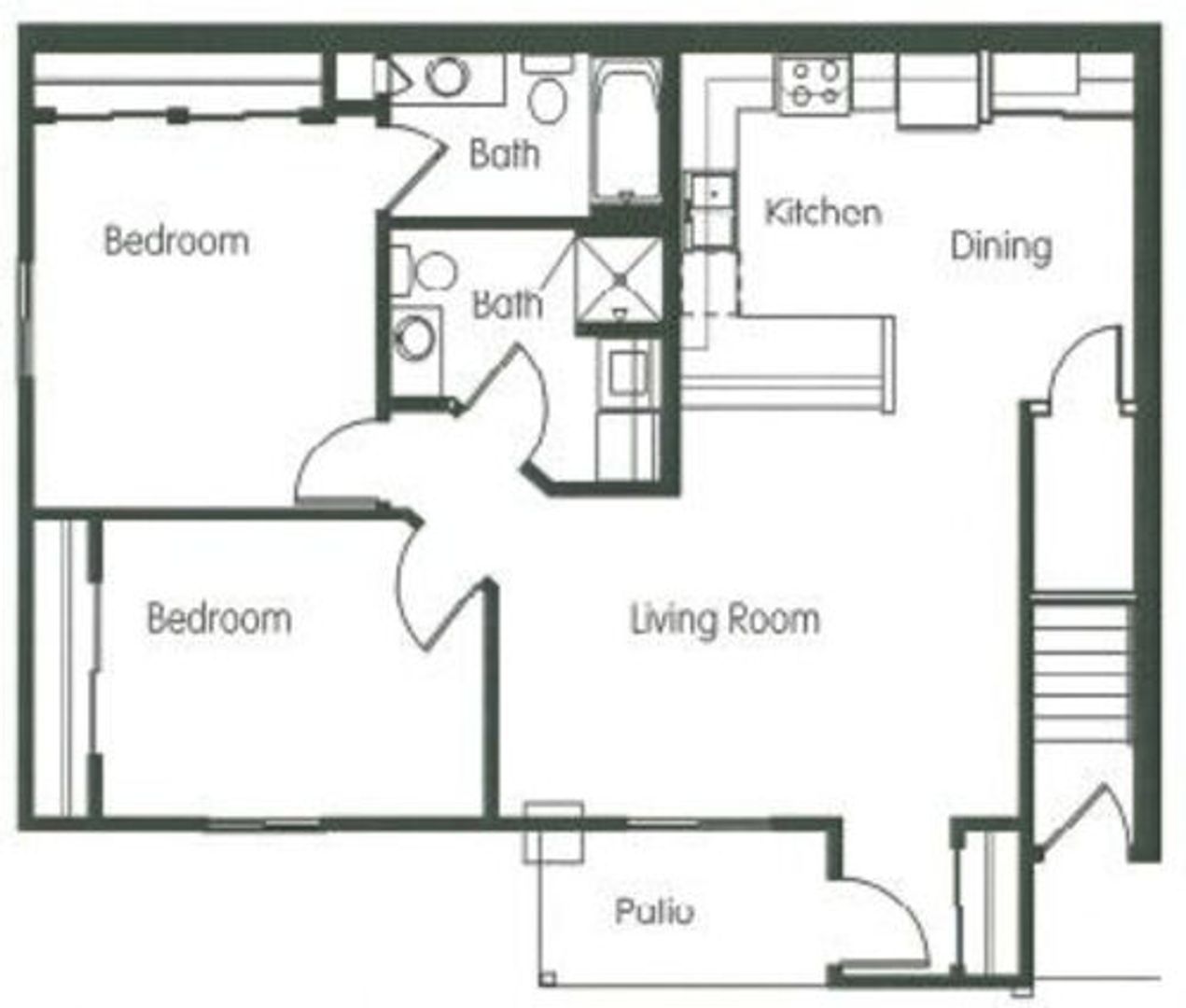 Discover this ground-level, corner 2-bedroom, 2-bath apartment in Mauston, WI. The south- and east-facing unit offers views of greenspace and neighboring buildings, and includes a private entry and a detached one-car garage. The kitchen features original cabinets, a pantry and an adjacent dining area. Both bedrooms and the living room are equipped with ceiling fans, and the primary bedroom includes an ensuite bathroom. Washer and dryer are in-unit and a window-wall A/C unit serves the living room. A patio provides outdoor access from the unit.